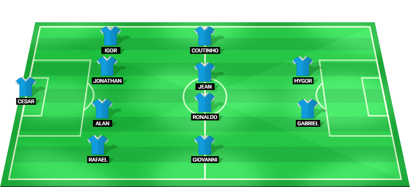 Cesar (GK), Rafael (DF), Alan (DF), Jonathan (DF), Igor (DF), Giovanni (MF), Ronaldo (MF), Jean (MF), Coutinho (MF), Gabriel (FW), Hygor (FW)