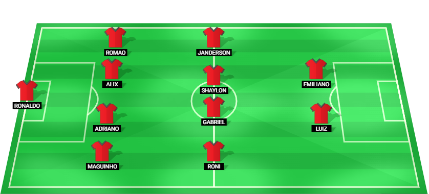 Ronaldo (GK), Maguinho (DF), Adriano (DF), Alix (DF), Romao (DF), Roni (MF), Gabriel (MF), Shaylon (MF), Janderson (MF), Luiz (FW), Emiliano (FW)