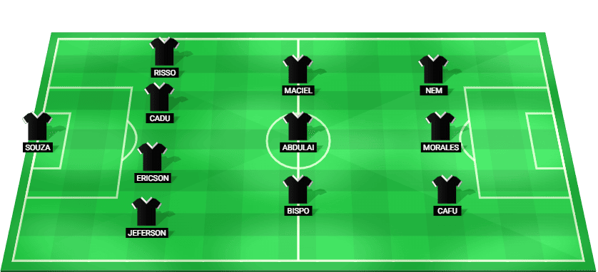 Souza (GK), Jeferson (DF), Ericson (DF), Cadu (DF), Risso (DF), Bispo (MF), Abdulai (MF), Maciel (MF), Cafu (FW), Morales (FW), Nem (FW).