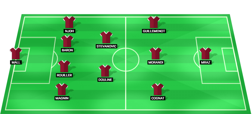 Mall (GK), Magnin (DF), Rouiller (DF), Baron (DF), Njoh (DF), Douline (MF), Stevanovic (MF), Cognat (AM), Morandi (AM), Guillemenot (AM), Mraz (FW).