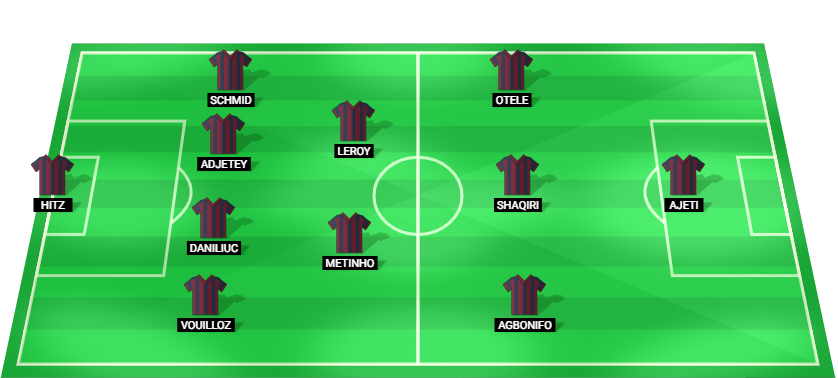 Hitz (GK), Vouilloz (DF), Daniliuc (DF), Adjetey (DF), Schmid (DF), Metinho (MF), Leroy (MF), Agbonifo (AM), Shaqiri (AM), Otele (AM), Ajeti (FW)