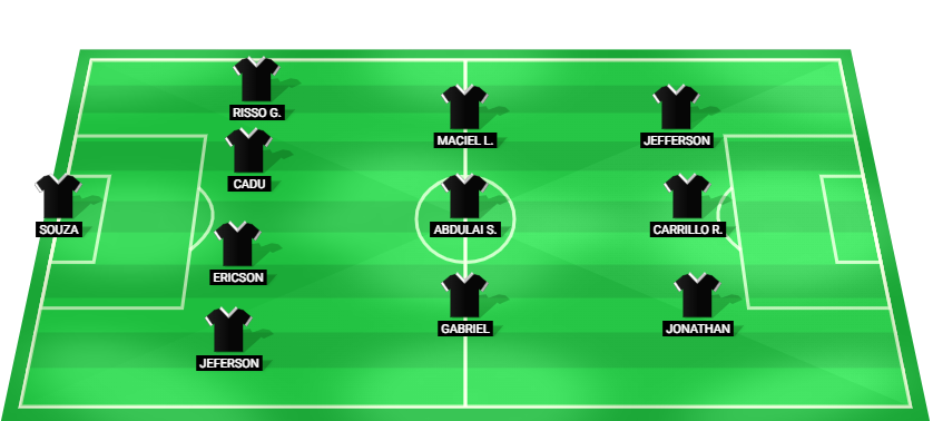Victor Souza (GK), Jeferson (DF), Ericson (DF), Cadu (DF), Risso G. (DF), Gabriel Bispo (MF), Abdulai S. (MF), Maciel L. (MF), Jonathan Cafu (FW), Carrillo R. (FW), Jefferson Nem (FW)