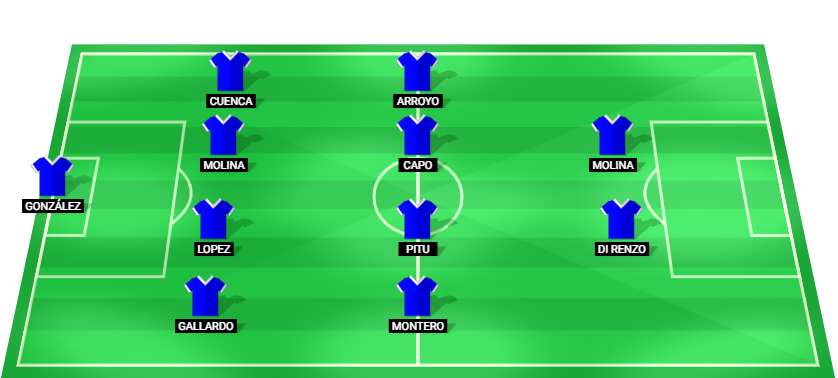 Gonzalez (GK), Gallardo (DF), Lopez (DF), Molina (DF), Cuenca (DF), Montero (MF), Pitu (MF), Capo (MF), Arroyo (MF), Di Renzo (FW), Molina (FW).