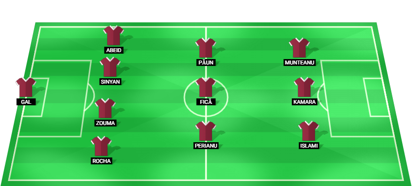 Gal (GK), Rocha (DF), Zouma (DF), Sinyan (DF), Abeid (DF), Perianu (MF), Fică (MF), Păun (MF), Islami (FW), Kamara (FW), Munteanu (FW).