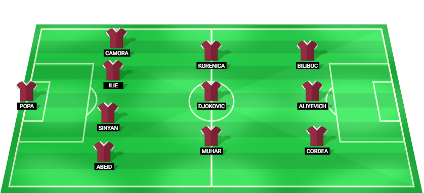 Popa (GK), Abeid (DF), Sinyan (DF), Ilie (DF), Camora (DF), Muhar (MF), Djokovic (MF), Korenica (MF), Cordea (FW), Aliyevich (FW), Biliboc (FW)