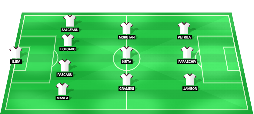 Iliev (GK), Manea (DF), Pascanu (DF), Bolgado (DF), Salceanu (DF), Grameni (MF), Keita (MF), Morutan (MF), Jambor (FW), Paraschiv (FW), Petrila (FW)