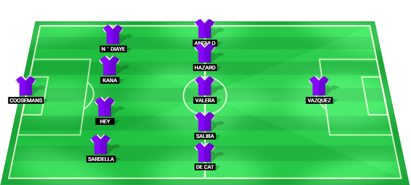 Coosemans (GK), Sardella (DF), Hey (DF), Kana (DF), N’Diaye (DF), De Cat (MF), Saliba (MF), Valera (MF), Hazard (MF), Angulo (MF), Vazquez (FW)
