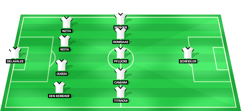 Delavalee (GK), Den Kerkhof (DF), Ousou (DF), Keita (DF), Nzita (DF), Titraoui (MF), Camara (MF), Pflucke (MF), Romsaas (MF), Bernier (MF), Scheidler (FW)