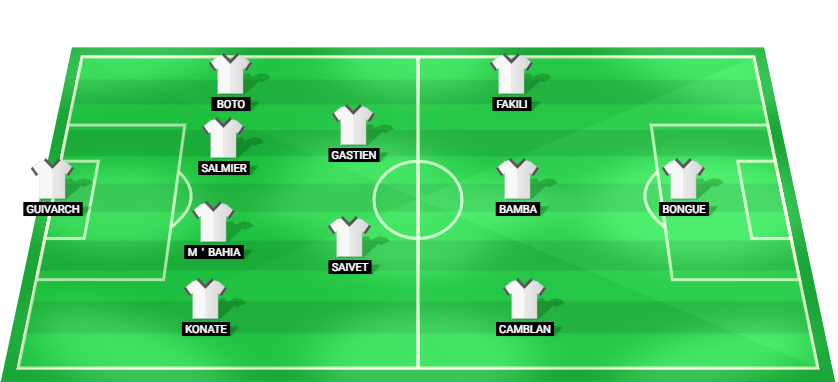 Guivarch (GK), Konate (DF), M’Bahia (DF), Salmier (DF), Boto (DF), Saivet (MF), Gastien (MF), Camblan (AM), Bamba (AM), Fakili (AM), Bongue (FW)