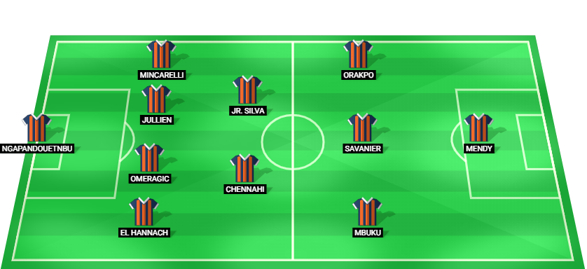Ngapandouetnbu (GK), El Hannach (DF), Omeragic (DF), Jullien (DF), Mincarelli (DF), Chennahi (MF), Jr. Silva (MF), Mbuku (AM), Savanier (AM), Orakpo (AM), Mendy (FW)