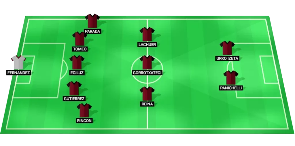 Mirandes Expected Lineup: Raul Fernandez (GK), Rincon (DF), Gutierrez (DF), Egiluz (DF), Tomeo (DF), Parada (DF), Reina (MF), Gorrotxategi (MF), Lachuer (MF), Panichelli (FW), Urko Izeta (FW)