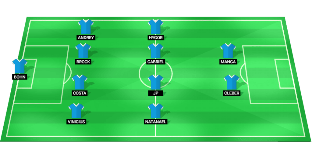 Bohn (GK), Vinicius (DF), Costa (DF), Brock (DF), Andrey (DF), Natanael (MF), JP (MF), Gabriel (MF), Hygor (MF), Cleber (FW), Manga (FW).