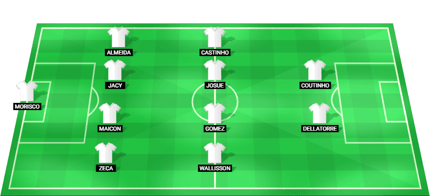 CRB’s predicted lineup reflects their reliance on key attackers like Mikael and wide playmakers to challenge Coritiba’s defense: