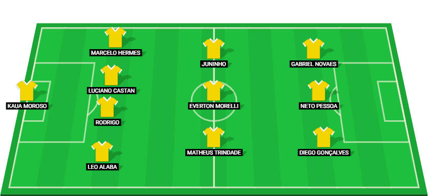 Kaua Moroso (GK), Leo Alaba (DF), Rodrigo (DF), Luciano Castan (DF), Marcelo Hermes (DF), Matheus Trindade (MF), Everton Morelli (MF), Juninho (MF), Diego Gonçalves (FW), Neto Pessoa (FW), Gabriel Novaes (FW).