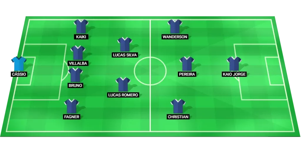 Cruzeiro Starting Lineup (4-2-3-1): Cássio (GK), Fagner (DF), Fabrício Bruno (DF), Villalba (DF), Kaiki (DF), Lucas Silva (MF), Lucas Romero (MF), Christian (MF), Matheus Pereira (MF), Wanderson (MF), Kaio Jorge (FW)