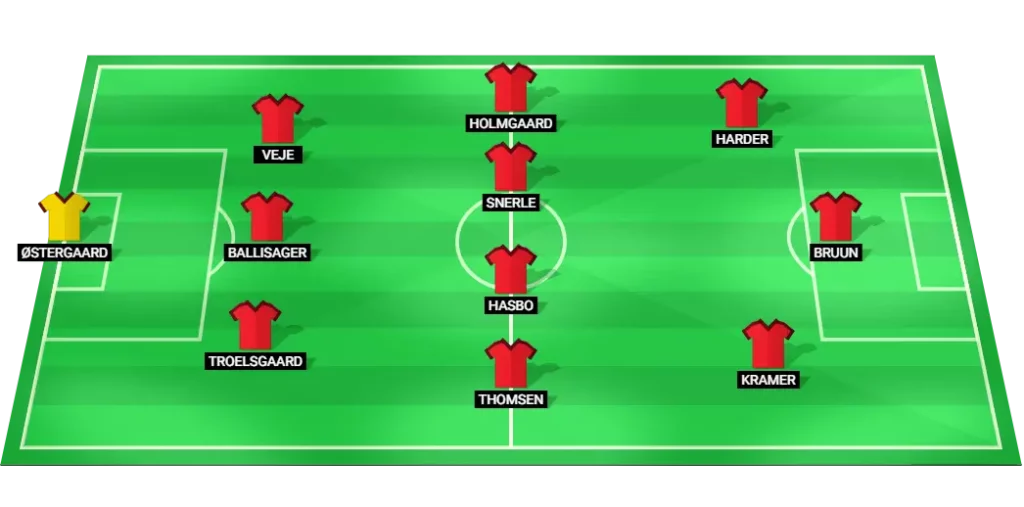 The starting lineups for this football game will probably show how each team plans to play. Denmark will use a defensive 3-4-3 formation, while Sweden will use a 4-2-3-1 formation. Based on recent team announcements and formations, below are the likely starting elevens.