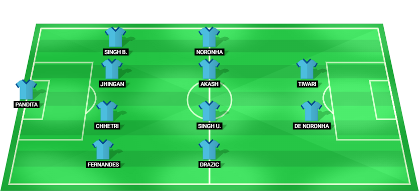 Pandita (GK), Fernandes (DF), Chhetri (DF), Jhingan (DF), Singh B. (DF), Drazic (MF), Singh U. (MF), Akash (MF), Noronha (FW), De Noronha (FW), Tiwari (FW).