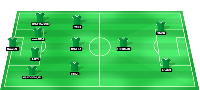 Nwabali (GK), Osayi-Samuel (DF), Ajayi (DF), Awaziem (DF), Onyemaechi (DF), Ndidi (MF), Onyeka (MF), Iwobi (MF), Lookman (MF), Adams (FW), Simon (FW).