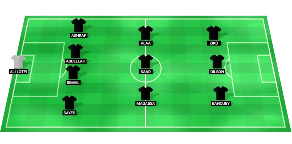 Hamada Sedki may tweak his side to address their recent slump, but no injuries force his hand: Ali Lotfi (GK), Mohamed Ashraf (DF), Islam Abdellah (DF), Mohamed Ismail (DF), Ahmed Sayed (DF), Hamdy Alaa (MF), Mostafa Saad (MF), Maata Magassa (MF), Mostafa Ziko (FW), Dilson (FW), Abdelrahman El Banouby (FW).