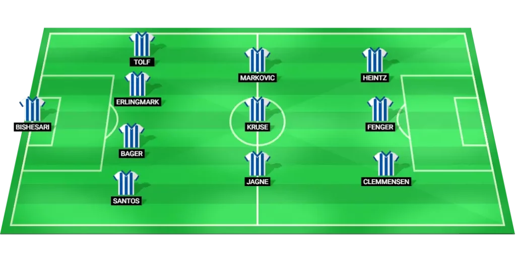 IFK Goteborg Predicted Lineup: Bishesari (GK), Santos (DF), Bager (DF), Erlingmark (DF), Tolf (DF), Jagne (MF), Kruse (MF), Markovic (MF), Clemmensen (FW), Fenger (FW), Heintz (FW)