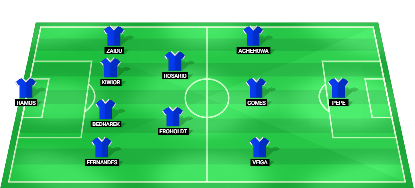 Ramos (GK), Fernandes (DF), Bednarek (DF), Kiwior (DF), Zaidu (DF), Froholdt (MF), Rosario (MF), Veiga (AM), Gomes (AM), Aghehowa (AM), Pepe (FW).
