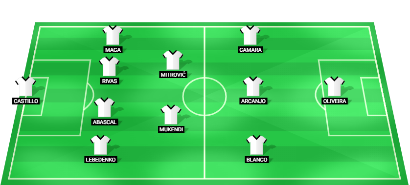 Castillo (GK), Lebedenko (DF), Abascal (DF), Rivas (DF), Maga (DF), Mukendi (MF), Mitrović (MF), Blanco (AM), Arcanjo (AM), Camara (AM), Oliveira (FW).