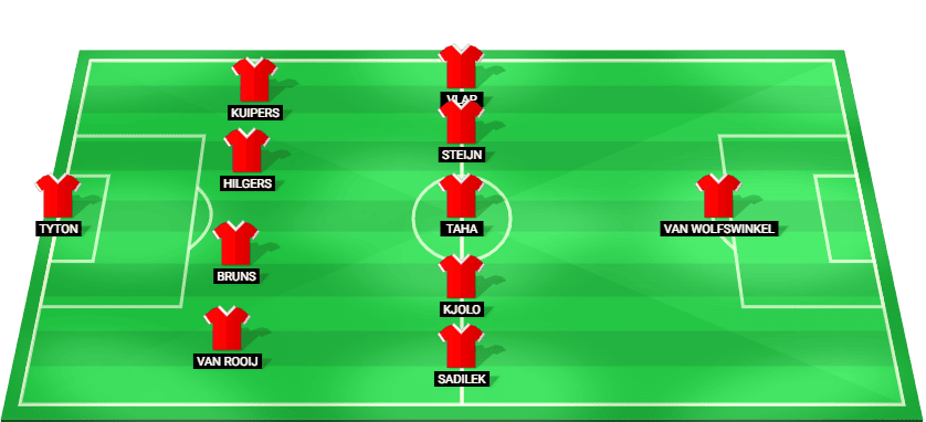 Tyton (GK), Van Rooij (DF), Bruns (DF), Hilgers (DF), Kuipers (DF), Sadilek (MF), Kjolo (MF), Taha (MF), Steijn (MF), Vlap (MF), Van Wolfswinkel (FW).