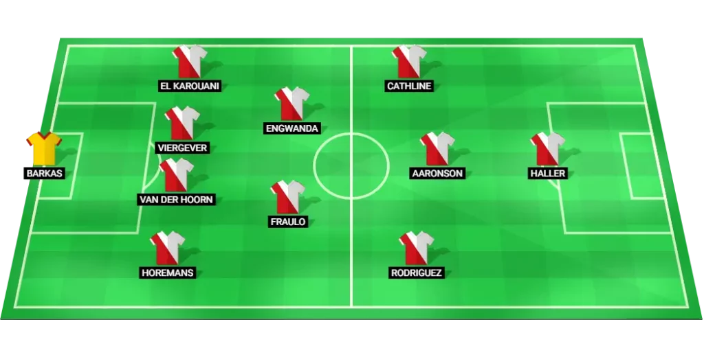 FC Utrecht Possible Starting Lineup (4-2-3-1): Barkas (GK), Horemans (DF), Van der Hoorn (DF), Viergever (DF), El Karouani (DF), Fraulo (MF), Engwanda (MF), Cathline (MF), Aaronson (MF), Rodriguez (MF), Haller (FW)