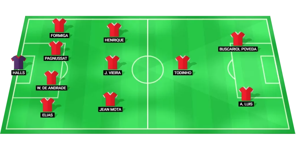 Vila Nova Predicted Lineup (4-3-1-2): Halls (GK), Elias (DF), W. de Andrade (DF), T. Pagnussat (DF), W. Formiga (DF), J. Vieira (MF), I. Henrique (MF), J. Todinho (MF), Jean Mota (MF), G. Buscariol Poveda (FW), A. Luis (FW)