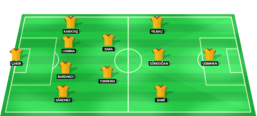 Çakır (GK), Sánchez (DF), Bardakcı (DF), Lemina (DF), Karataş (DF), Torreira (MF), Sara (MF), Sané (AM), Gündoğan (AM), Yılmaz (AM), Osimhen (FW).