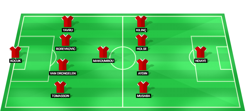 Kocuk (GK), Tomasson (DF), van Drongelen (DF), Borevkovic (DF), Yavru (DF), Makoumbou (MF), Musaba (AM), Aydın (AM), Holse (AM), Kılınç (AM), Ndiaye (FW).