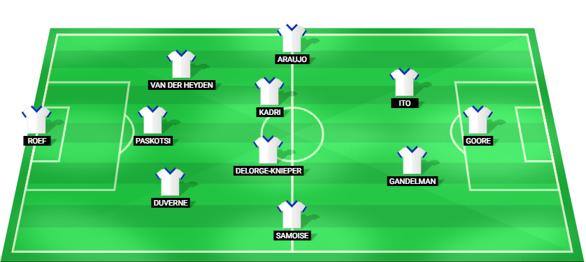 Roef (GK), Duverne (DF), Paskotsi (DF), Van Der Heyden (DF), Samoise (MF), Delorge-Knieper (MF), Kadri (MF), Araujo (MF), Gandelman (AM), Ito (AM), Goore (FW)
