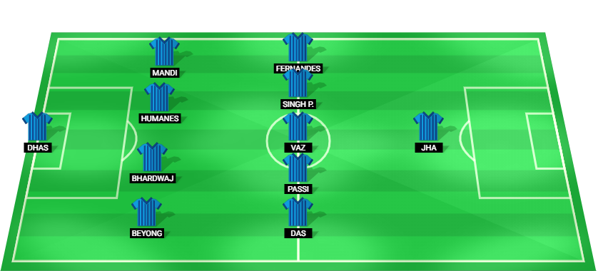 Dhas (GK), Beyong (DF), Bhardwaj (DF), Humanes (DF), Mandi (DF), Das (MF), Passi (MF), Vaz (MF), Singh P. (MF), Fernandes (MF), Jha (FW)