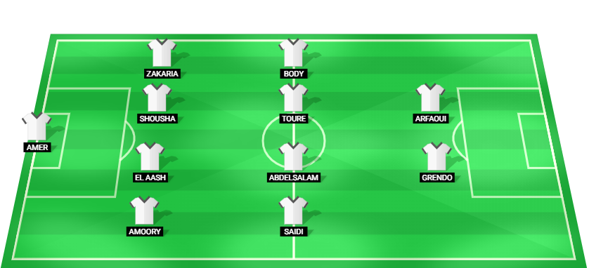 Amer (GK), Amoory (DF), El Aash (DF), Shousha (DF), Zakaria (DF), Saidi (MF), Abdelsalam (MF), Toure (MF), Body (MF), Grendo (FW), Arfaoui (FW)