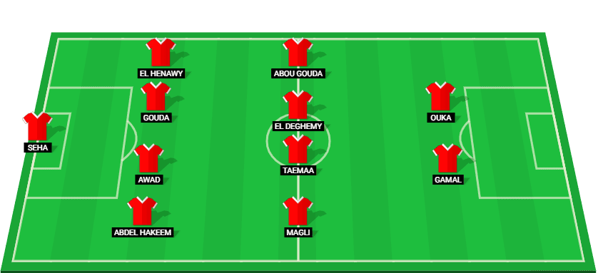 Seha (GK), Abdel Hakeem (DF), Awad (DF), Gouda (DF), El Henawy (DF), Magli (MF), Taemaa (MF), El Deghemy (MF), Abou Gouda (MF), Gamal (FW), Ouka (FW).
