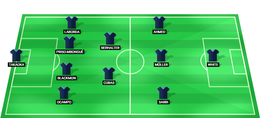 Takaoka (GK), Ocampo (DF), Blackmon (DF), Priso-Mbongué (DF), Laborda (DF), Cubas (MF), Berhalter (MF), Sabbi (AM), Müller (AM), Ahmed (AM), White (FW).