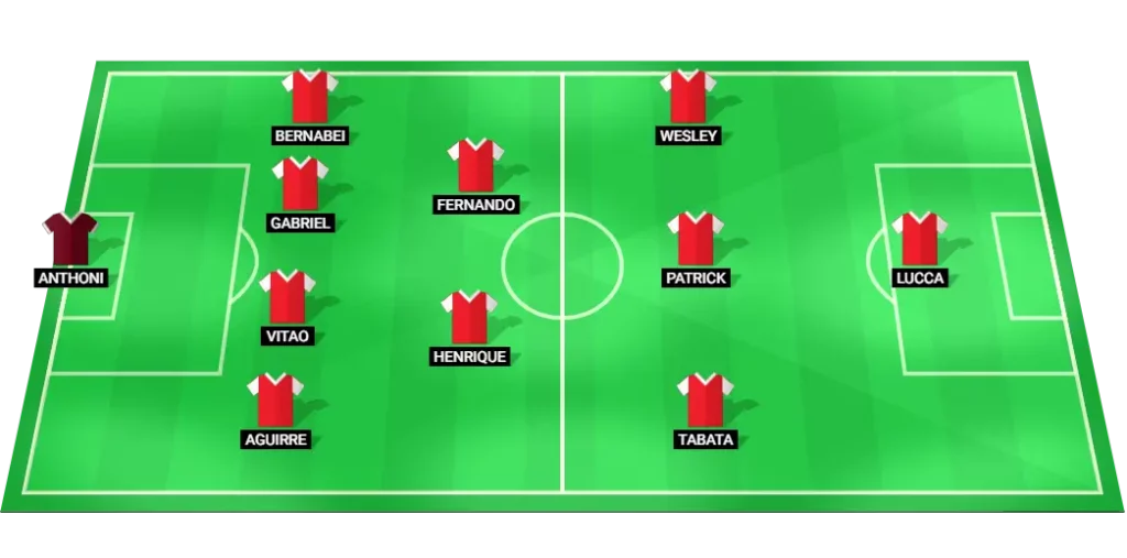 Mirassol’s lineup emphasizes their attacking strengths, with Reinaldo leading the charge.