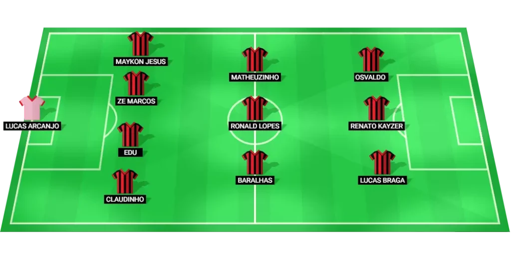 Vitoria Predicted Lineup: Lucas Arcanjo (GK), Claudinho (DF), Edu (DF), Ze Marcos (DF), Maykon Jesus (DF), Baralhas (MF), Ronald Lopes (MF), Matheuzinho (MF), Lucas Braga (MF), Renato Kayzer (FW), Osvaldo (MF)