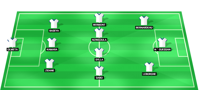 Olmeta (GK), Zidane (DF), Kamara (DF), Baseya (DF), Dabo (MF), Sylla (MF), Nzingoula (MF), Bermont (MF), Leborgne (FW), N’Guessan (FW), Bernardeau (FW)