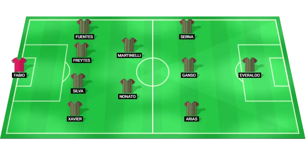 Fluminense Expected Lineup: Fabio (GK), Samuel Xavier (DF), Thiago Silva (DF), Juan Pablo Freytes (DF), Gabriel Fuentes (DF), Gustavo Nonato (MF), Martinelli (MF), Jhon Arias (MF), Ganso (MF), Kevin Serna (MF), Everaldo (FW).