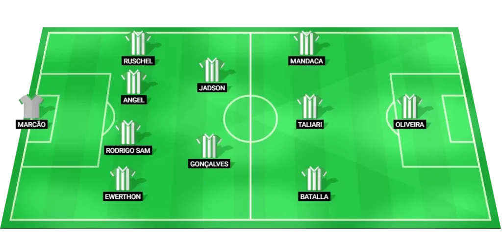 Juventude Expected Lineup: Marcão (GK), Ewerthon (DF), Wilker Angel (DF), Rodrigo Sam (DF), Alan Ruschel (DF), Jadson (MF), Caique Gonçalves (MF), Emerson Batalla (MF), Luis Mandaca (MF), Gabriel Taliari (MF), Gilberto Oliveira (FW).