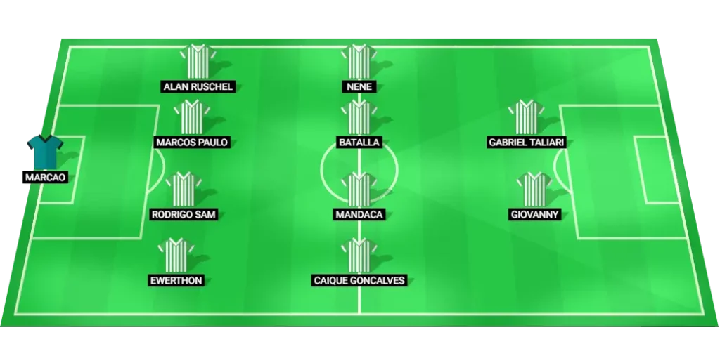 Juventude Predicted Lineup: Marcao (GK), Ewerthon (DF), Rodrigo Sam (DF), Marcos Paulo (DF), Alan Ruschel (DF), Caique Goncalves (MF), Mandaca (MF), Batalla (MF), Nene (MF), Giovanny (FW), Gabriel Taliari (FW)