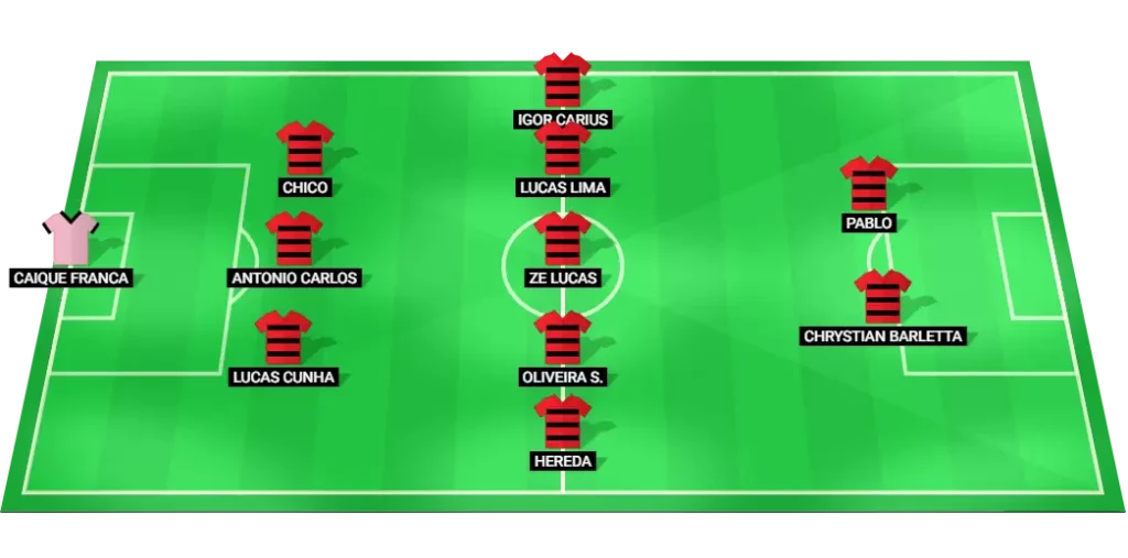 Sport Recife Predicted Lineup: Caique Franca (GK), Lucas Cunha (DF), Antonio Carlos (DF), Chico (DF), Hereda (MF), Oliveira S. (MF), Ze Lucas (MF), Lucas Lima (MF), Igor Carius (MF), Chrystian Barletta (FW), Pablo (FW)