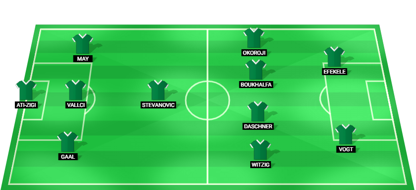 Ati-Zigi (GK), Gaal (DF), Vallci (DF), May (DF), Stevanovic (MF), Witzig (AM), Daschner (AM), Boukhalfa (AM), Okoroji (AM), Vogt (FW), Efekele (FW).