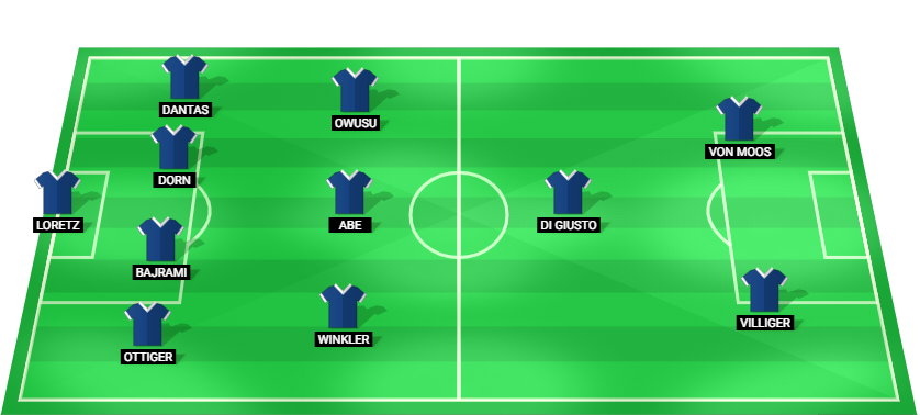 Loretz (GK), Ottiger (DF), Bajrami (DF), Dorn (DF), Dantas (DF), Winkler (MF), Abe (MF), Owusu (MF), Di Giusto (MF), Villiger (FW), Von Moos (FW)