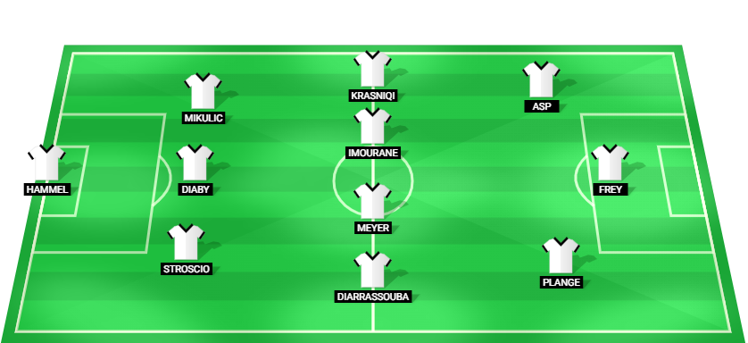 Hammel (GK), Stroscio (DF), Diaby (DF), Mikulic (DF), Diarrassouba (MF), Meyer (MF), Imourane (MF), Krasniqi (MF), Plange (FW), Frey (FW), Asp (FW)