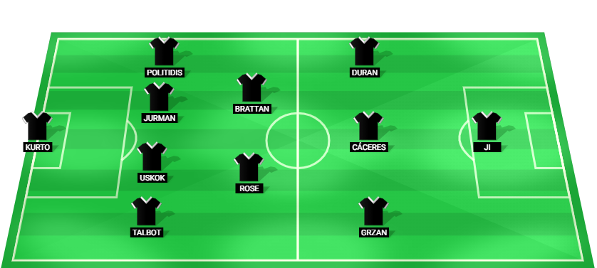 Kurto (GK), Talbot (DF), Uskok (DF), Jurman (DF), Politidis (DF), Rose (MF), Brattan (MF), Grzan (AM), Cáceres (AM), Duran (AM), Ji (FW).