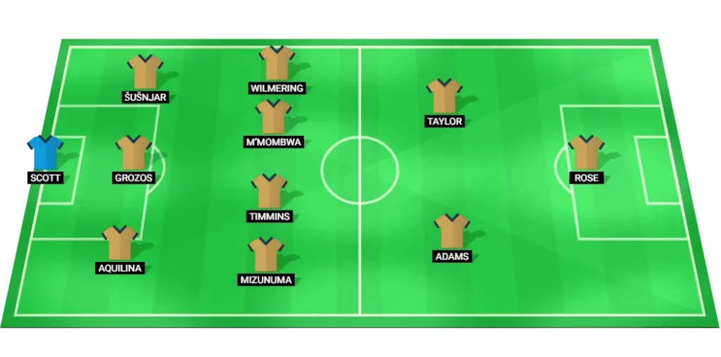 The Jets, led by Eli Adams, will likely opt for a 3-4-2-1 setup despite recent struggles: Scott (GK), Aquilina (DF), Grozos (DF), Šušnjar (DF), Mizunuma (MF), Timmins (MF), M’Mombwa (MF), Wilmering (MF), Adams (MF), Taylor (MF), Rose (FW).