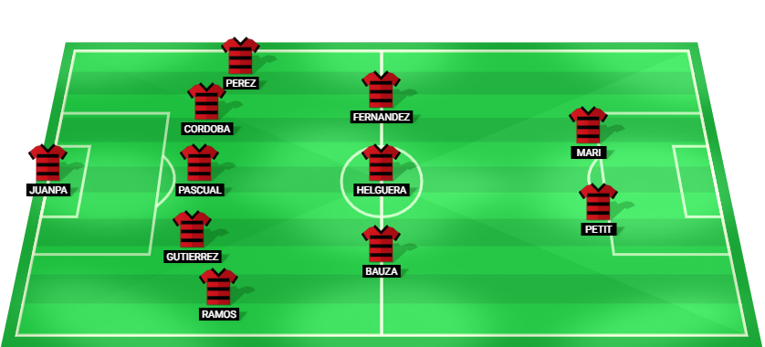 Juanpa (GK), Ramos (DF), Gutierrez (DF), Pascual (DF), Cordoba (DF), Perez (DF), Bauza (MF), Helguera (MF), Fernandez (MF), Petit (FW), Mari (FW)