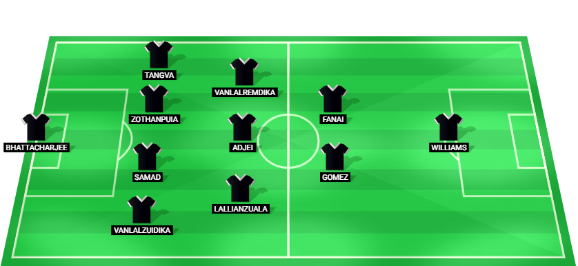 Bhattacharya (GK), Vanlalzuidika (DF), Samad (DF), Zothanpuia (DF), Tangva (DF), Lallianzuala (MF), Adjei (MF), Vanlalremdika (MF), Gomez (AM), Fanai (AM), Williams (FW)